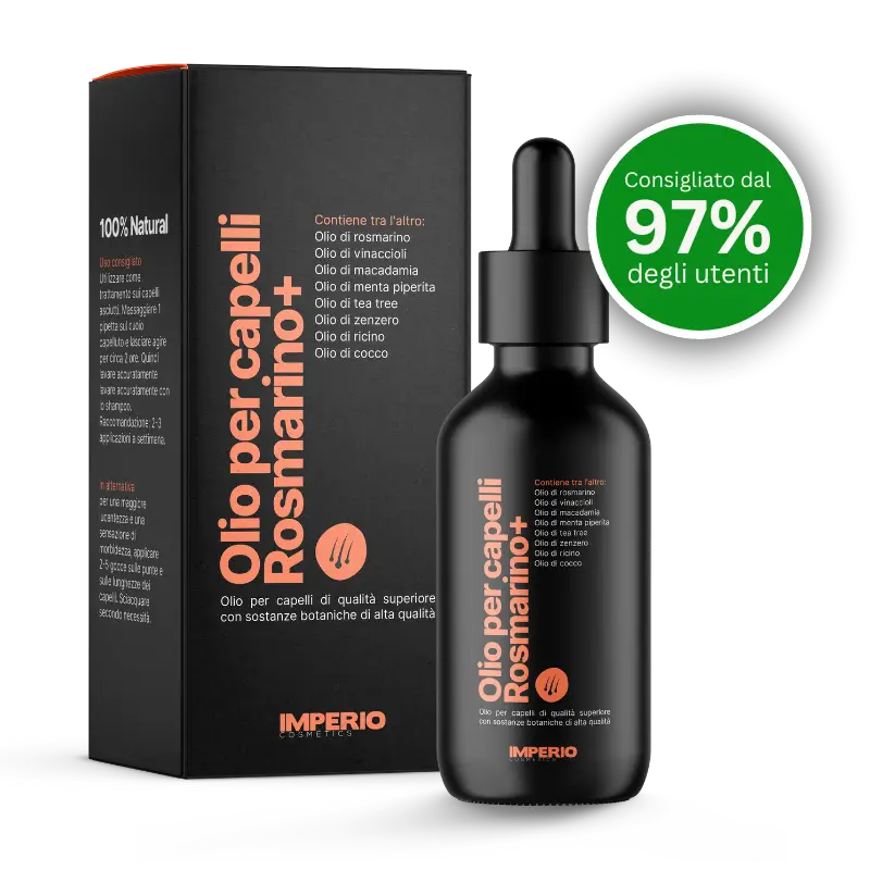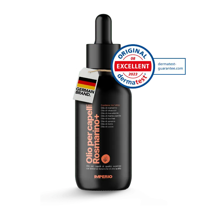Il vincitore del nostro test: IMPERIO Hair Oil Rosemary+ ci ha colpito per la sua formulazione avanzata, l’elevato contenuto di olio di rosmarino e la facile garanzia di rimborso. Oltre all’olio di rosmarino, il prodotto contiene altri additivi molto efficaci. Un olio per capelli in cui prezzo e prestazioni sono in armonia!